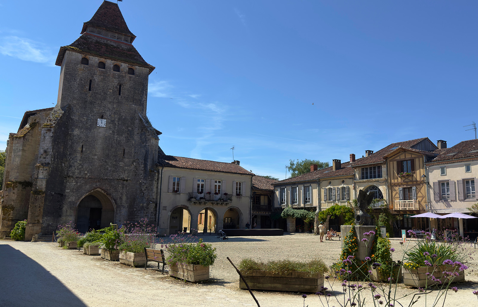 The Notre-Dame church, with its bell tower and Romanesque nave, is another remarkable architectural feature of the square. Although it has been rebuilt several times, it retains the imprint of its medieval past. It is an essential meeting point for locals and visitors, especially during the many events that enliven the village throughout the year.