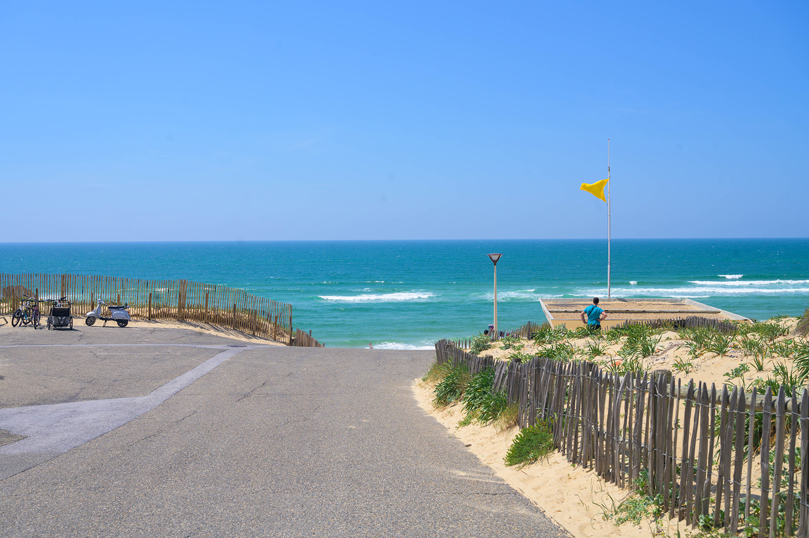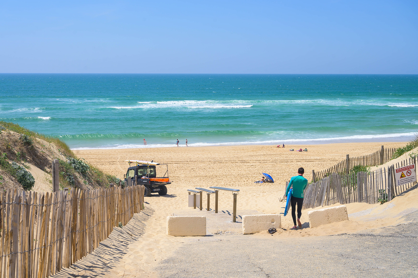 Une plage caractéristique des landes, entre forêt, cordon dunaire et l’océan. Il faut se garer au parking et ...